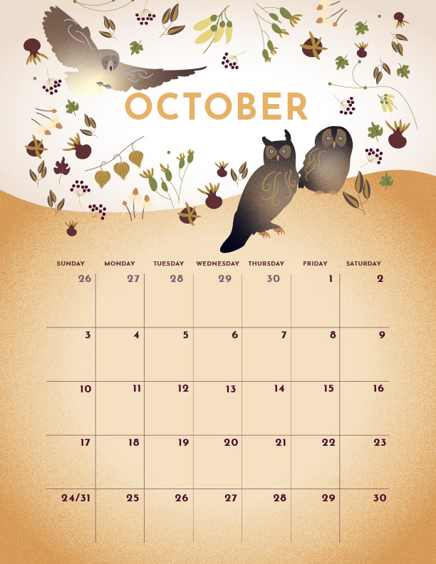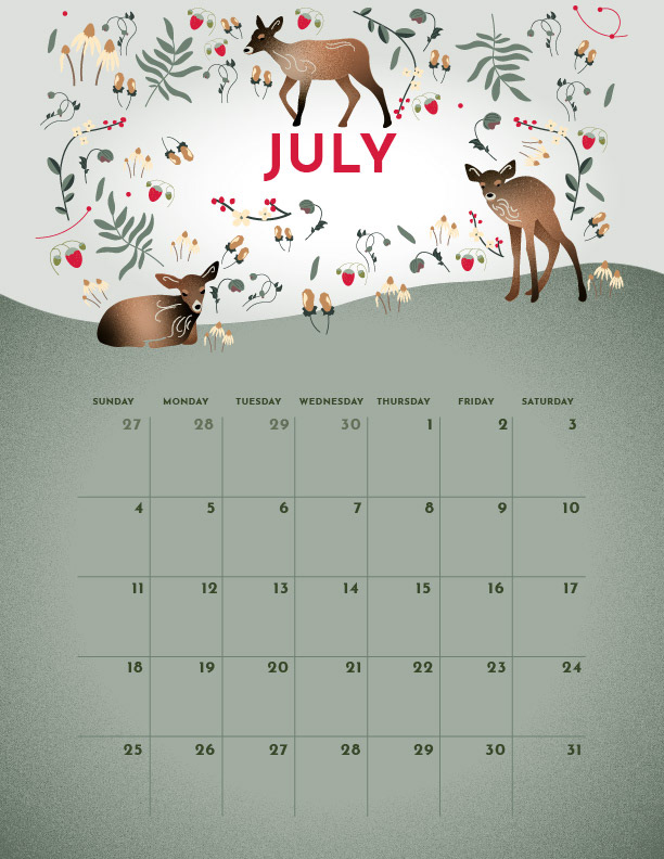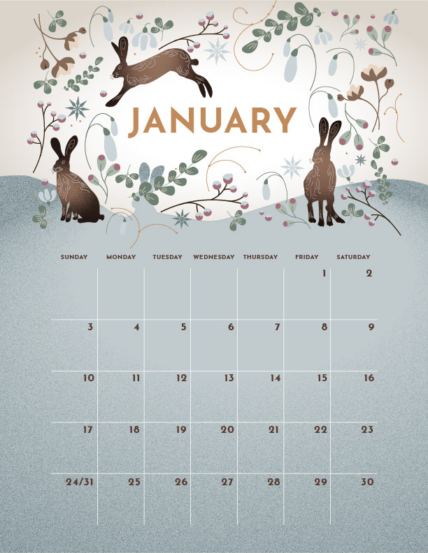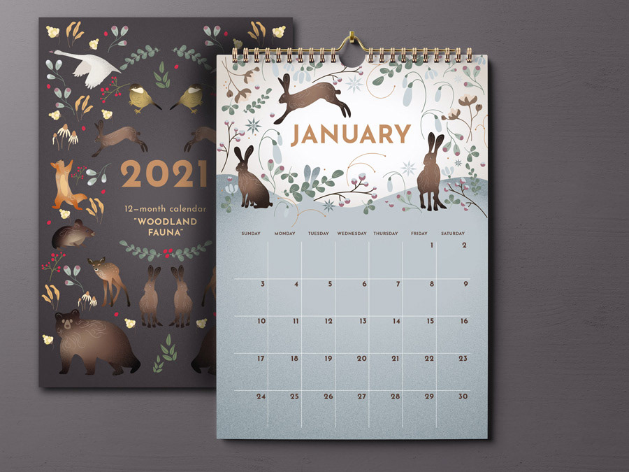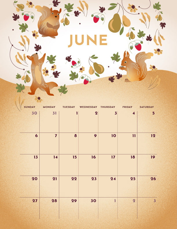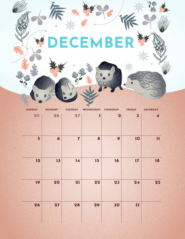 This was my personal project. I illustrated a 12-month calendar available for sale on Etsy.